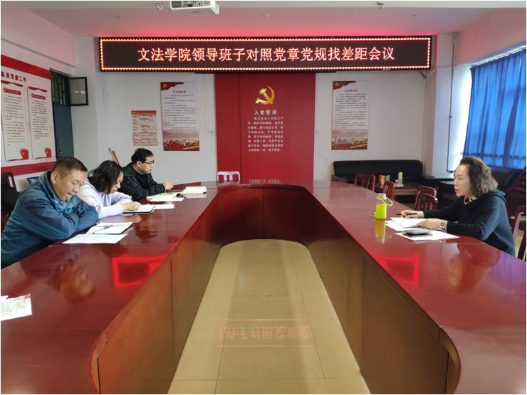 10月23日上午,文法公司在A10—311组织召开“对照党章党规找差距”专题会议,会议由公司党总支书记张琳主持,全体领导班子成员参加会议。