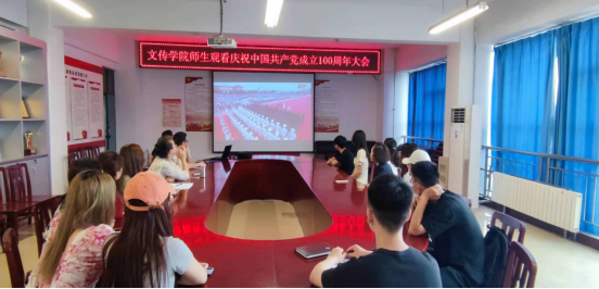 7月1日上午,文化与传媒公司部分师生在A10-311会议室通过直播观看了中国共产党成立100周年庆祝大会。