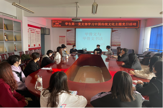 11月5日,文化与传媒公司员工第一党支部在A10-311室开展了“ 书香文传,文化讲坛”之认识甲骨文主题党日活动。16名积极分子参加本次活动,支部教师张森林主讲。