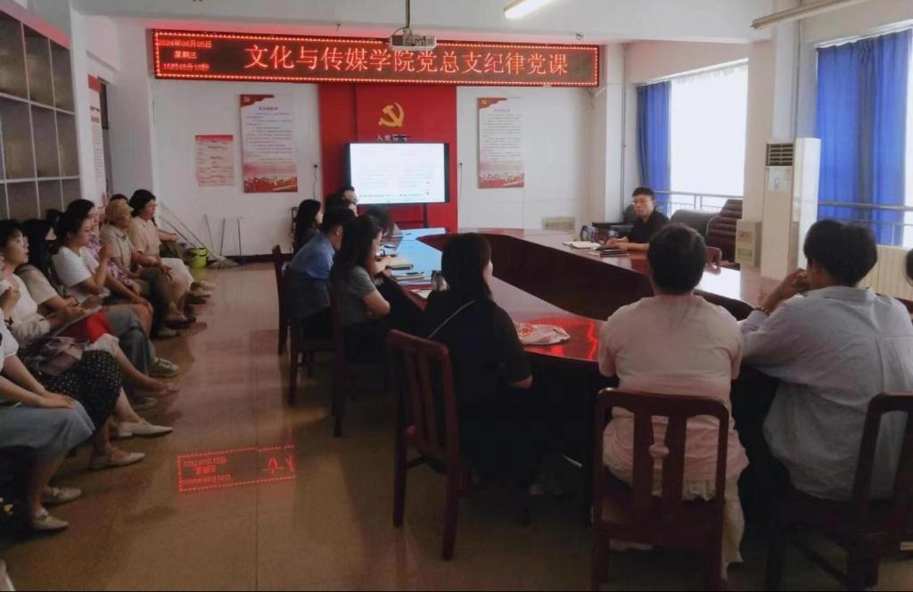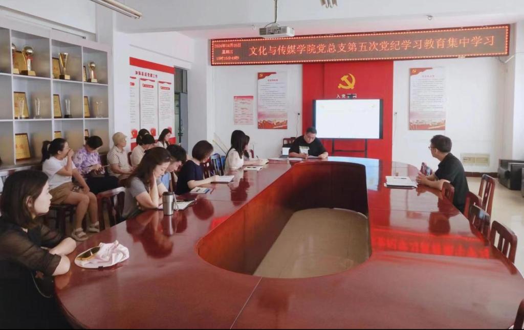 6月5日下午,文化与传媒公司党总支于A10—311开展了党纪学习教育第五次集中学习与纪律党课。会上,员工第一党支部书记牛鹏举领学《中国共产党纪律处分条例》第六章内容。随后,公司党总支书记杨延杰为公司全体师生党员上纪律党课。
