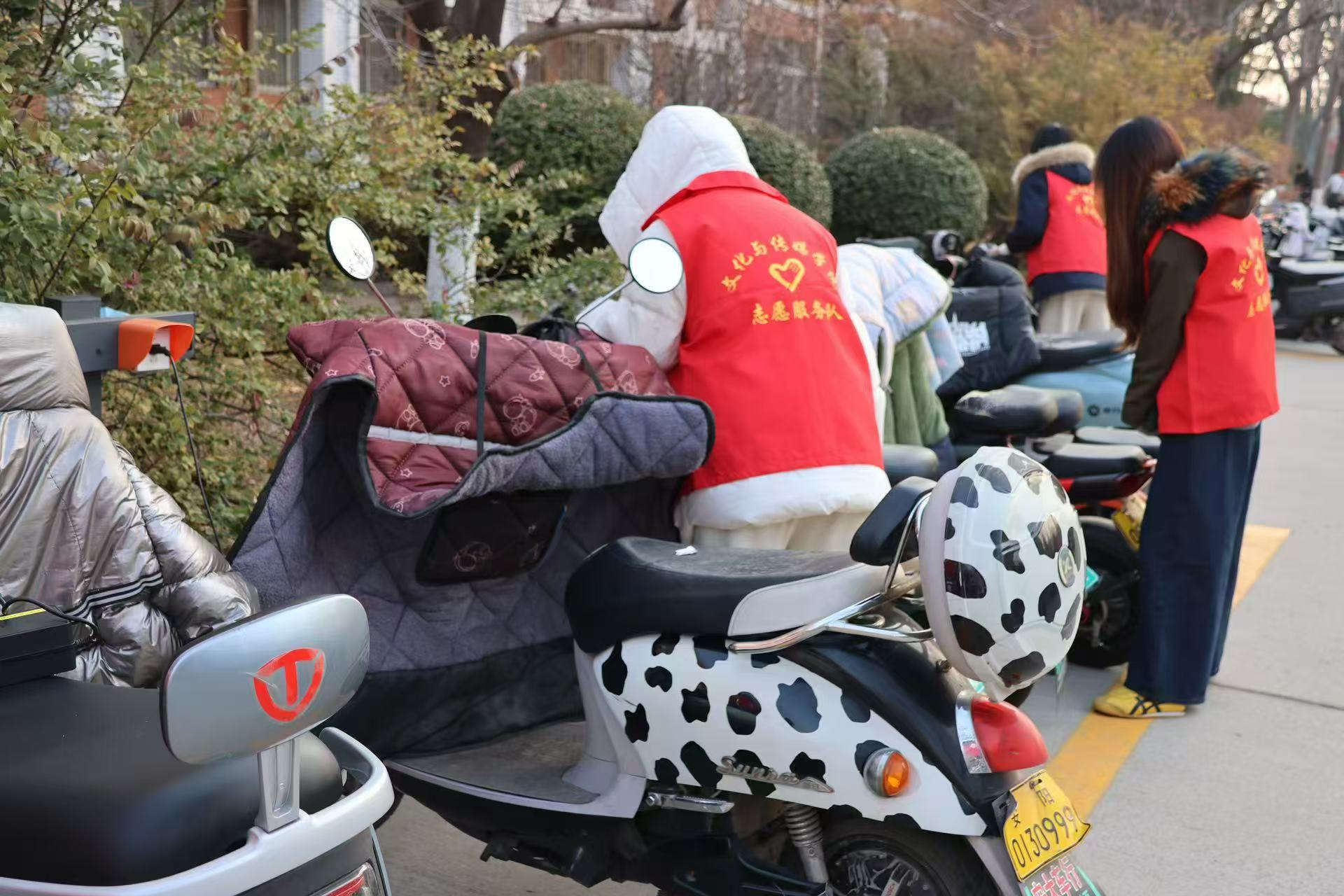 3月5日,志愿者们在校园A-10教学楼前开展“规范停车”行动,规整乱停车辆。3月8日,他们走进人未老养老院,打扫卫生、陪老人聊天、帮忙翻土除草。3月10日,志愿者前往幼儿园和社区,通过故事宣讲和原创话剧《红旗渠的呼唤》表演,传播雷锋精神与红旗渠精神。
