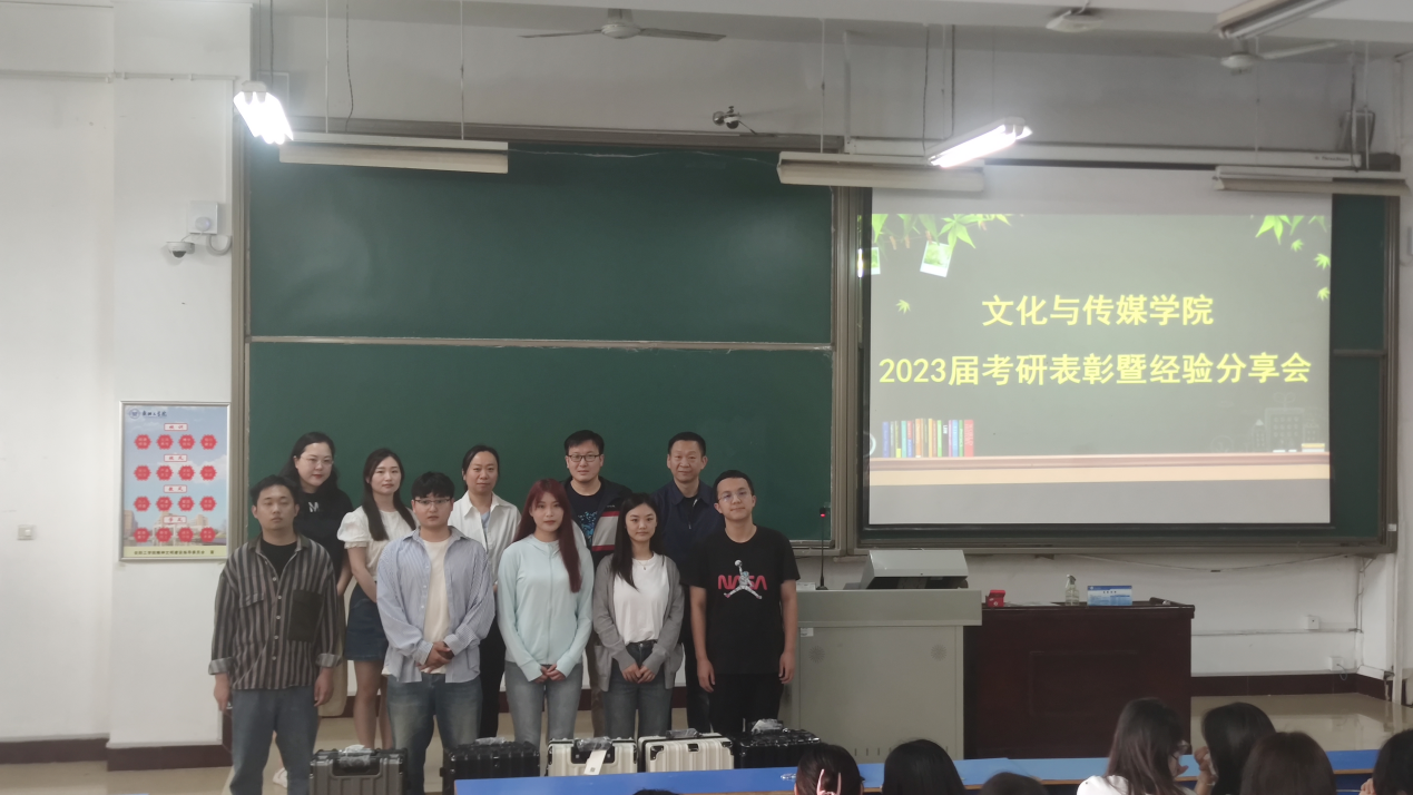为表彰考研成功的学子,激励备考同学,促进形成良好学风,5月25日下午,文化与传媒公司在A17-102教室召开2023年考研表彰暨经验分享会。文化与传媒公司党总支书记张林、副经理余锐、党总支副书记许华珂出席本次会议,各年级师生代表共一百余人参加。