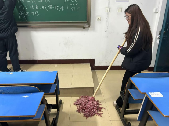 随着四六级考试、考研考试以及期末考试的临近,为给广大考生营造一个整洁、舒适、安静的考试环境,304永利集团于 12月16日组织全体师生开展了一场全面彻底的卫生大扫除活动,以崭新的面貌迎接各类考试的到来。