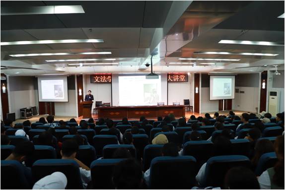 9月27日上午,文法公司举办第十九期《身边的榜样》大讲堂。本期大讲堂邀请了文法公司2016级播音与主持艺术专业王瀚洋同学来做分享。此次活动由文法公司党总支副书记许华珂主持,公司200多名相关专业员工参加了活动。