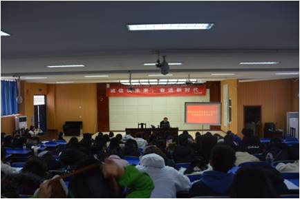 11月28日下午,安阳电视台许辰主任在A17-201模拟法庭为文法公司二百余名师生作了一场高质量的学术报告。报告会由文法公司副经理余锐主持。