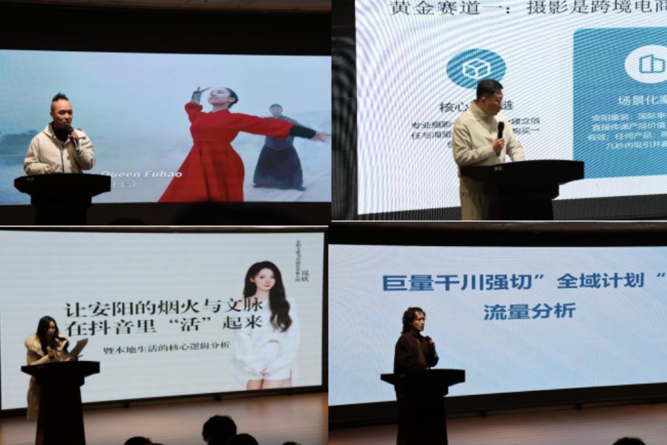 活动现场,安阳摄影家协会理事、导演徐强结合安阳和殷墟对外宣传片案例,解析文化短视频创作技巧;跨境电商企业运营总监高海堂以“摄影变现新赛道”为题提供商业化思路;文旅达人岚欣从用户视角解读地方文化传播;临汐信息科技有限公司总经理张子昂针对新媒体流量趋势做主题分享。企业导师的分享既有行业前沿动态,又紧扣安阳文化特色,与高校的理论教学形成互补,为员工构建了“理论+实践”的完整知识体系。