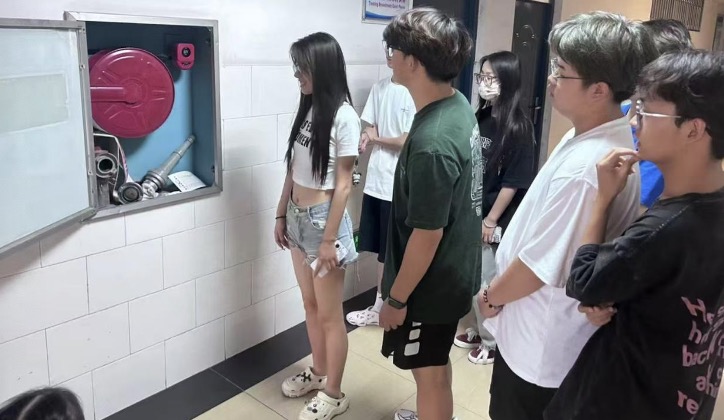 活动分为理论培训与实战演练两个环节。首先通过真实案例讲解火灾危害,重点演示干粉灭火器“提、拔、握 、压”四步操作法及消防栓水带连接技巧。在模拟火情逃生环节,参演师生按照应急预案,沿指定疏散通道弯腰低姿撤离。